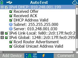 Testen der automatischen Verbindungsaushandlung, des Subnet und des DHCP-Servers für IPv4. DHCP Prüfung der Link-Local und der globalen IPv6-Adressen.