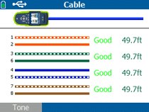 Überprüfen Sie Patch-Kabel mit dem integrierten Wiremap-Port, einschließlich des Aderdurchgangs oder der Länge, Kurzschlüsse oder offener oder vertauschter Paare in der Verkabelung.