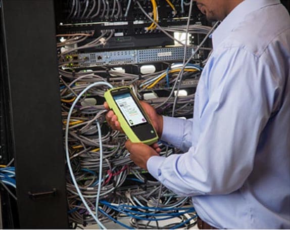 Umfassende Netzwerkdiagnose für die Inbetriebnahme und Wartung von Netzwerken über alle 3 Medien (Kupfer, Glasfaser und WLAN) in einem handlichen Gerät