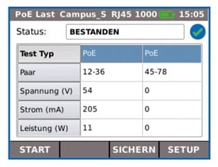 Ausführung eines PoE/PoE+-Lasttests zum Ermitteln der Leistung, die einem PoE-Gerät an seinem installierten Standort maximal zur Verfügung steht.