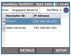 Der LanXPLORER Pro kann benutzt werden zum Erkennen von Konflikten im Netzwerk, wie unbeabsichtigt hinzugefügte DHCP-Server oder Geräte mit identischen IP-Adressen.