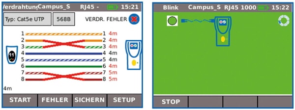 Verdrahtungstest auf Unterbrechungen, Kurzschlüsse, Fehlbeschaltungen und Split-Pair gemäß TIA-568.