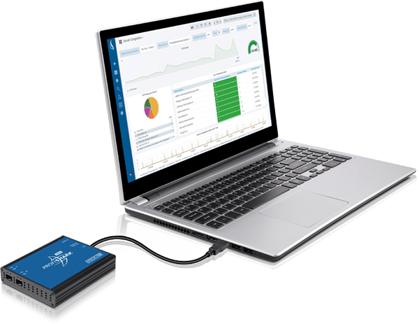 Der ProfiShark 10G USB TAP aggregiert kompletter 10G Full-Duplex Traffic ohne Verluste direkt auf einen USB 3.0-Port. Dank des USB‑3.0-Durchsatzes bis 5 Gb/s und Hardware-Filterfunktionen im ProfiShark Manager können bis zu 5 Gb/s an relevante Daten effizient an den PC übertragen werden .