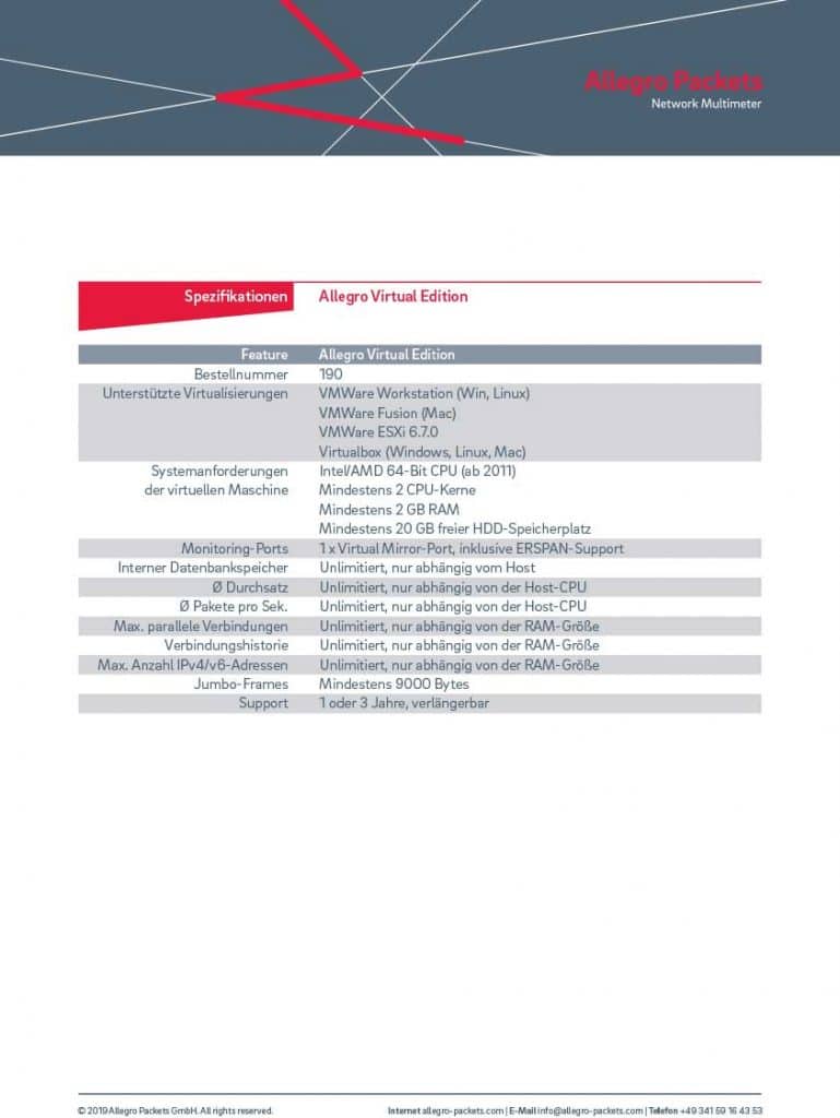 Vom günstigen Notebook bis zum High-End-Server: Die Allegro Virtual Edition nutzt vorhandene Ressourcen ideal aus. CPU-Kerne und Arbeitsspeicher lassen sich effizient zuweisen, sodass auch große PCAP-Dateien oder umfangreiche Verkehrsdaten schnell und zuverlässig ausgewertet werden können.