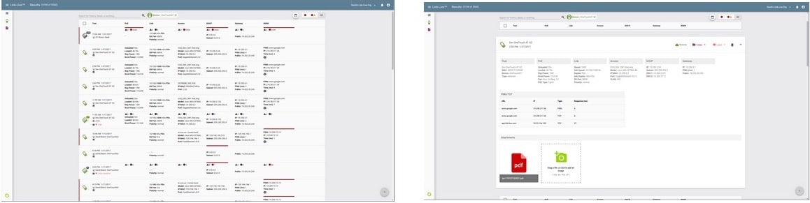 Sobald der OneTouch AT mit dem Link-Live Cloud Service verbunden wird, können verdrahtete und drahtlose Ergebnisse von Netzwerkverbindungstests und Berichte vom AutoTest automatisch zum Dashboard zwecks Projektmanagement und Berichterstellung hoch geladen werden. Dieser Cloud-basierte Dienst ist jederzeit und von überall aus verfügbar. Sie benötigen lediglich ein beliebiges Gerät mit einem Browser und einer Internetverbindung. Besonders hilfreich ist er für Leiter von Remote-Teams, die Testergebnisse sofort einsehen müssen. Zusätzlich haben Teams, die den AirCheck G2, den LinkSprinter oder den LinkRunner verwenden, ein einzelnes Dashboard-System für die Verwaltung von Netzwerkverbindungstests, da all diese tragbaren Netzwerk-Tools mit dem Link-Live Cloud Service verbunden sind.