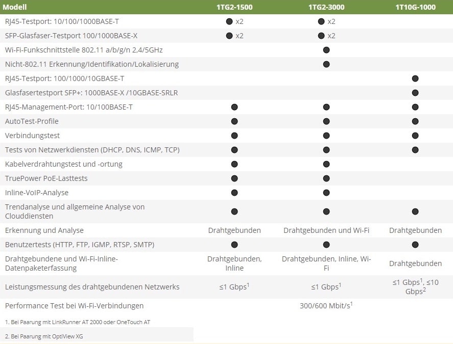 Vielseitig: Der OneTouch hat ein modulares Design: Wählen Sie das G2-Modul mit den doppelten 10/100/1G Kupfer- / Faseroptik-Ethernet-Testports und 802.11a/b/g/n/ac WLAN oder das 10G-Modul mit 100Mbit / 1G / 10G Kupfer- / Faseroptik-Ethernet-Testports (Ethernet-Kabeltester).